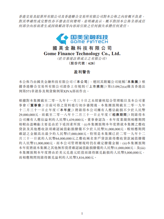 国美金融科技2019业绩由盈转亏 预亏不少于2900万元